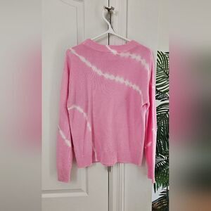 Stylish pink tie-dye sweater. Perfect for casual wear. couples small light marks on back, was not spot treated so may come out, otherwise excellent condition