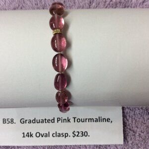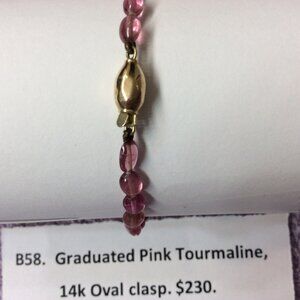 Bracelet of Graduated Pink Tourmaline Gemstones and 14k Gold Oval Clasp