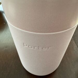 Stylish pink travel mug with lid. Perfect for on-the-go use. Some staining on the inside.