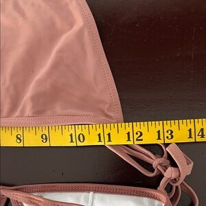 Stylish pink triangle bikini set with adjustable straps. Perfect for the beach. A cup