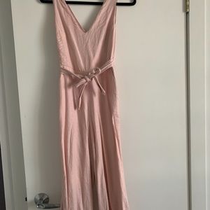 Pink V Neck Cross Back Cropped Wide Leg Jumpsuit