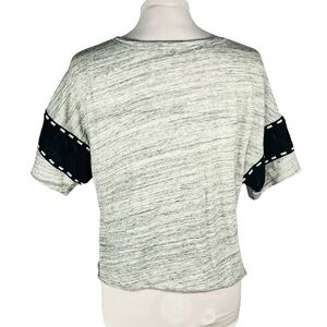 PINK VICTORIA’S SECRET Women’s Gray Black Crop V Neck Football Tee Shirt Mesh Shoulder Raw Cut Hem Size XS