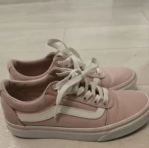 Step out in style with these pre-loved chic pink canvas sneakers. Perfect for casual outings, these shoes offer comfort and a trendy look. Worn just a handful of times, they have so much love/life to give back. Happy shopping.