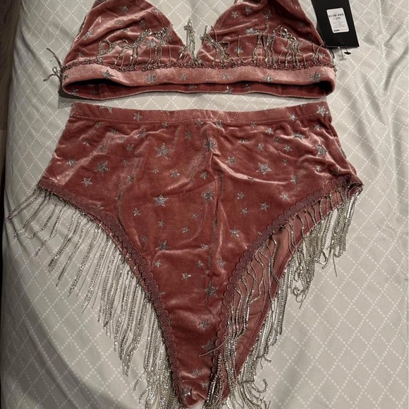 Pink Velvet & Rhinestone Fringe Set