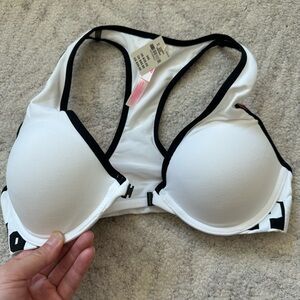 Stylish bra with a sleek design. White base with black accents. Perfect for everyday wear.