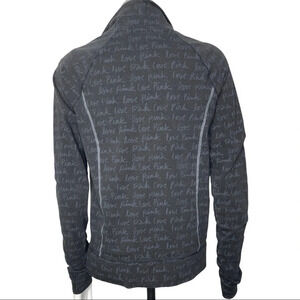 Pink Victoria’s Secret 1/4 zip long sleeve pullover. Black with “love pink” overall graphic print