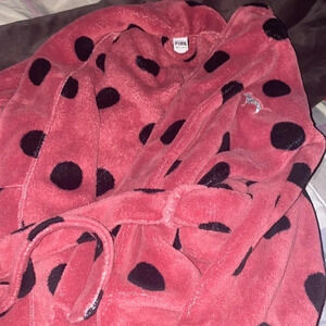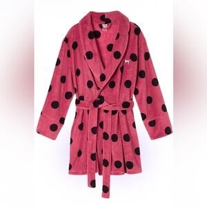 Pink Victoria’s Secret cozy pink polka dot soft Begonia robe Sz XS