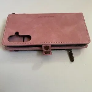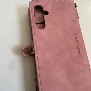 Elegant pink faux leather wallet-style phone case with secure magnetic closure