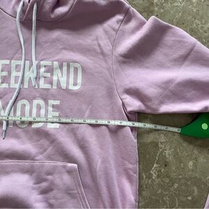 Stylish pink hoodie with bold 'Weekend' print. Ideal for relaxed outings.