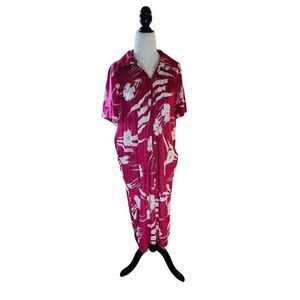Fun little beach cover / Kaftan with zip front and great pockets. Made of soft polyester with vibrant pink print