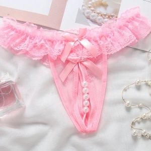 PINK 5 Pearl crotchless Lace G-String Thong.