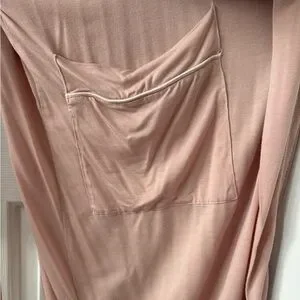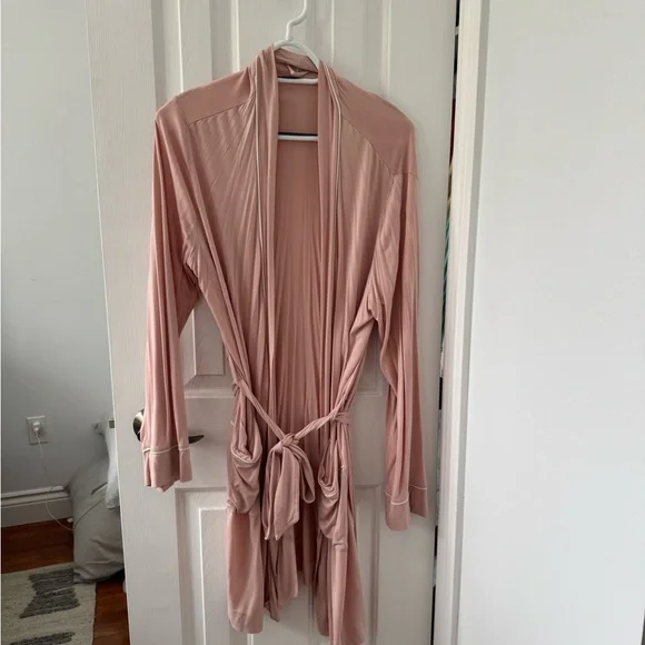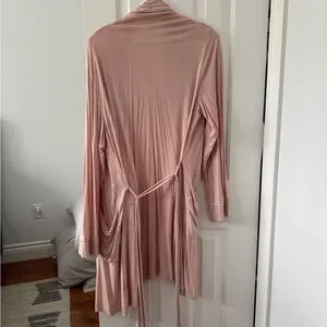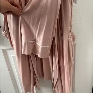 Experience comfort and style with this elegant pink women's robe. Perfect for lounging or sleepwear. Purchased at Indigo - worn only seldomly for 1 year. Piped trim accent.