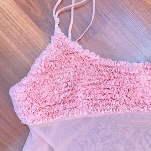Elegant pink women's top with adjustable straps and a ruffled top part with the rest being sheer and see through. In perfect condition🎀