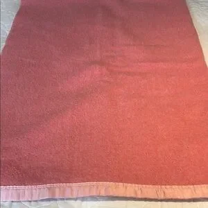 Cozy pink wool blanket. Perfect for adding warmth and style. Blanket measures 60 by 82 inches and is in very good used condition. There is some subtle fraying on the satin trim, and some minor pilling on the blanket which comes off easily when plucked. Colour is vivid and bright. A lovely vintage piece.