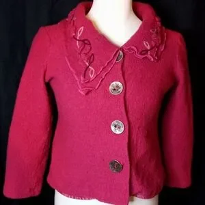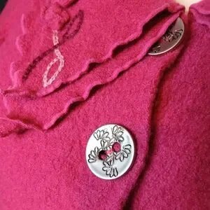 Pink 100% wool exterior coat. Embroidered details.