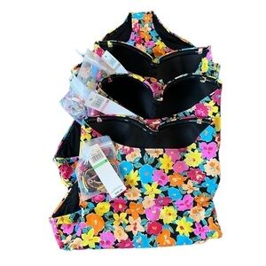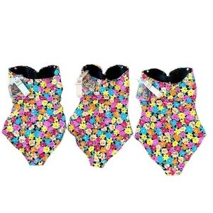 🆕 Pink & Yellow Floral Strapless / Halter One-Piece