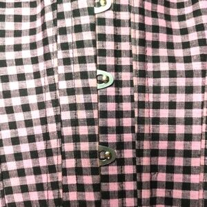 Add a touch of elegance with this pink and black checkered corset belt. Perfect for enhancing any outfit with its stylish design.