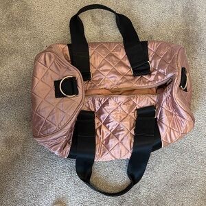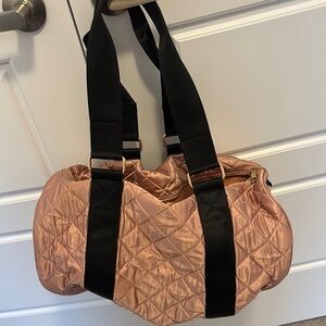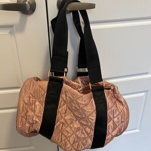 🌸🖤This chic satin duffel bag features a quilted design in a striking pink and black color combination. The sturdy black straps provide a bold contrast, making it both stylish and functional for everyday use. Its medium size is perfect for carrying essentials while maintaining a fashionable look. Approx measurements wear flaws photographed.