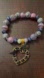 Elegant bracelet featuring pink and blue beads with a gold heart charm. Perfect for adding a touch of color to any outfit.