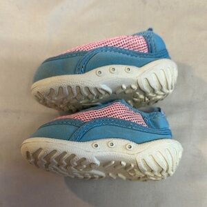 These baby walker shoes boast a charming pink and blue color scheme, designed for effortless slip-on wear. Crafted with a cushioned sole, they ensure comfort for little feet during daily activities. The modern design and durable materials make them a practical choice for everyday adventures.