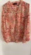 This relaxed blouse features a striking pink and cream graphic design. With its long sleeves and mandarin collar, it offers a sophisticated yet casual look. The flowing silhouette and unique pattern make it a standout piece for any wardrobe.