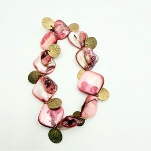 Add a dreamy shimmer to your look with this Pink and Gold Mother of Pearl Nugget Bracelet.