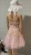Beautiful pink cocktail dress. Features gold sequins and a mauve ribbon accent. A-line silhouette. Sparkly and festive.