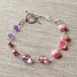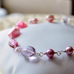 Pink and Lavender Sterling Silver Wire Wrapped Bracelet