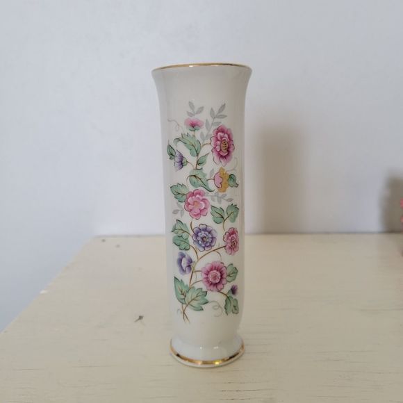 Beautiful Slim Vintage Japanes Floral Porcelain Bud Vase. Handpainted in Japan with gold rim. This vase would be beautiful in an entry way or bathroom or as a gift for someone you love. 6.5 inches tall.