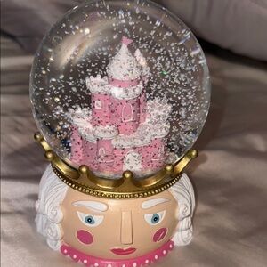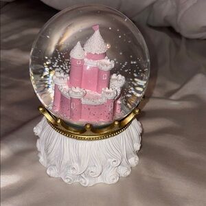 Delight in the festive charm of this pink and white holiday snow globe. Perfect for adding a whimsical touch to your home decor.
