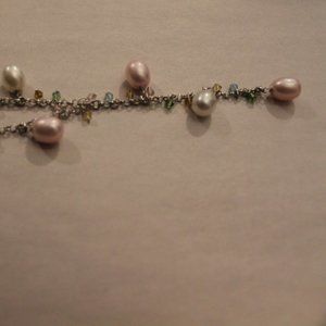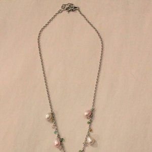 Pink and White Pearl Necklace with Multicolour Beads