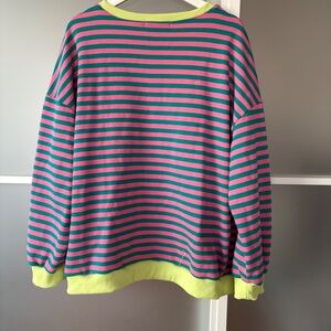 Pink and green striped sweatshirt with contrasting cuffs. Sz. XL