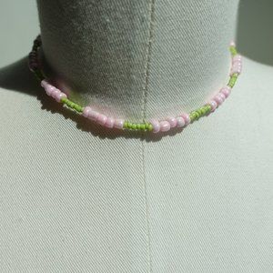Pink and light green glass bead necklace