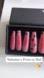 Stylish Valentine's pink press-on nails. Elegant design with black heart accents.