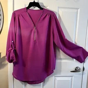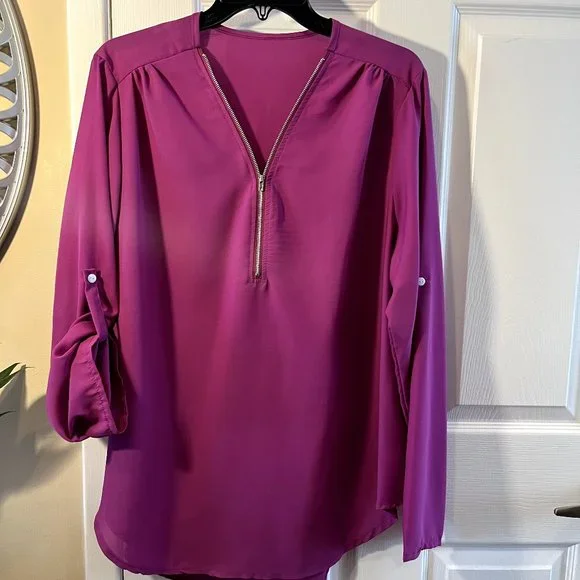 Pink Blouse with gathered sleeves, zipped neckline