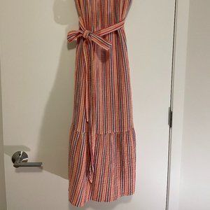 Pink, blue, yellow striped Gap Maxi Sundress, linen with removable belt, size S. Worn only a few times.