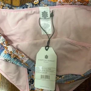 Everyday Sunday pink paisley bikini with crochet accents. Structured V in the front.