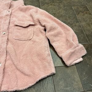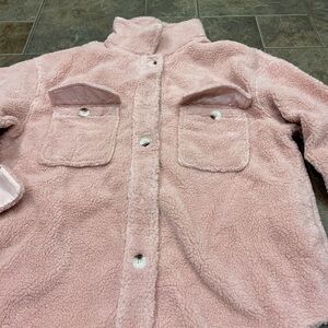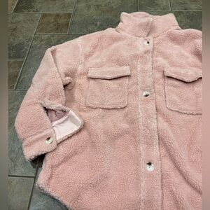 NWOT Cozy and stylish pink sherpa jacket. Perfect for keeping warm and comfortable. Button down and has 2 front button up pockets. Fleece teddy coat. The cuffs button up at end of sleeve.