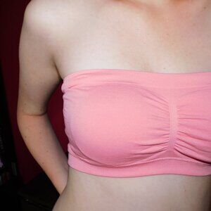 New with tags. Pink coral bandeau with removable liners. Comes with straps. c'est moi - seamless collection. One Size.
