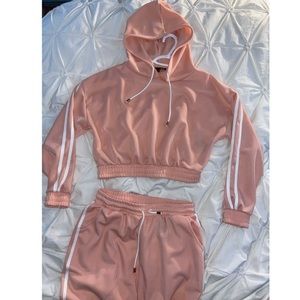 tracksuit set from fashion nova. pink with white stripes. sweater is a cropped. never worn