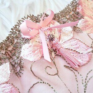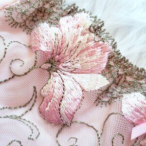 Pink embroidered floral lace trim bikini panty