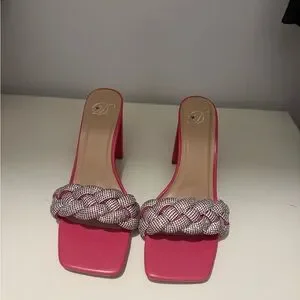 Step out in style with these chic pink braided heels. Perfect for any occasion.