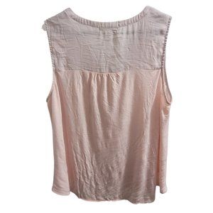 This light pink, sleeveless top features button details and a high-low hem. Perfect under a cardigan at work, and can transfer to night easily. All items are washed and sent smelling nice and fresh :)
