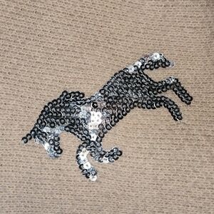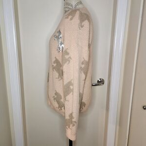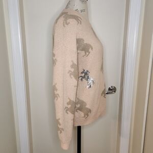 Light Pink Knit Crewneck Jumper Sweater with Tan & Silver Sequins Unicorns, by DREAMERS.