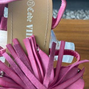 Pink Tassel suede sandals, flat, size, size 7.5, code VIII