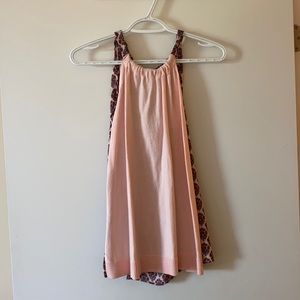 Pink and printed tank from Loft. Small rip under arm as pictured (would be easy to fix). Has a tie at the back. Perfect for work or lunch!