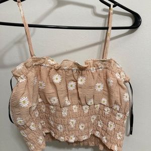 Forever21.. Polyester Spandex blend pink top with daisies print.. size Medium