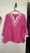 Pink w White Trim, 3/4 Sleeves, Embroidered, Linen/Cotton Tunic