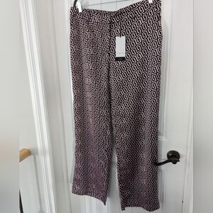 SATIN wide leg pants by Costes European Women's XXL pink with black geo prints