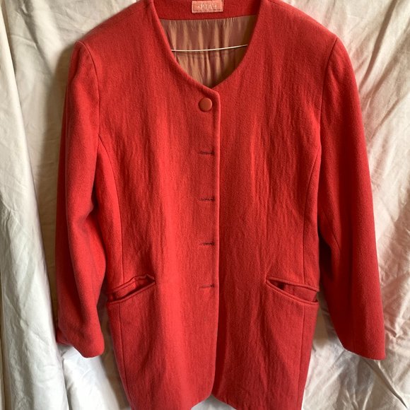 Pink wool lined Jacket, shoulder pads, vintage, size L